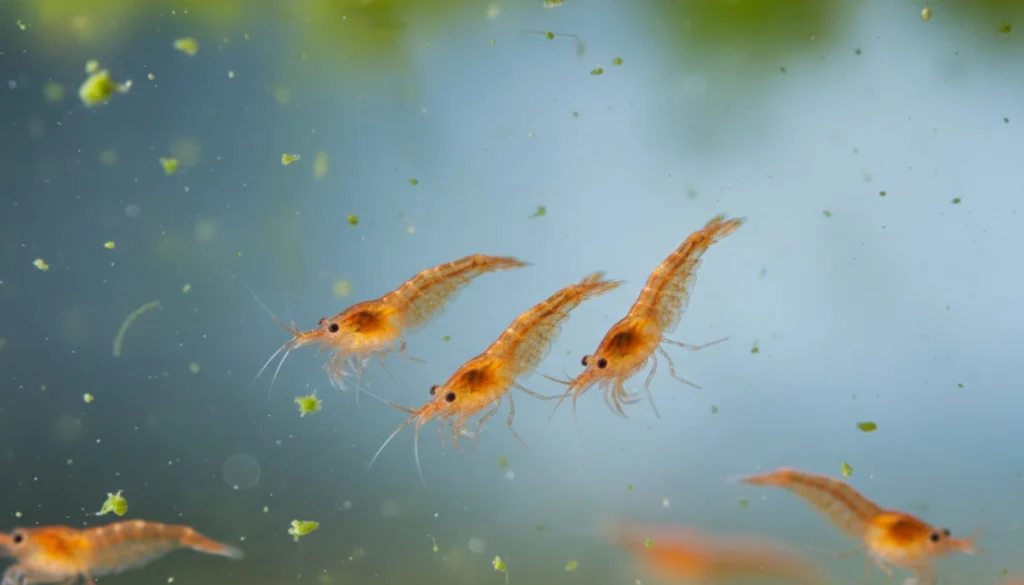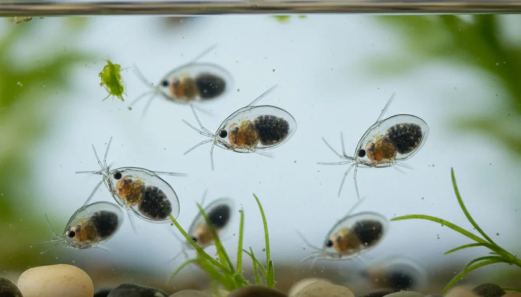 Daphnia, or water fleas, are another excellent food option rich in protein and essential fatty acids. They have a stimulating effect on breeding activity and are suitable for many small fish such as neon tetras and danios. Regular feeding can keep breeding pairs healthy and trigger spawning: it is advisable to provide daphnia two to three times a week.